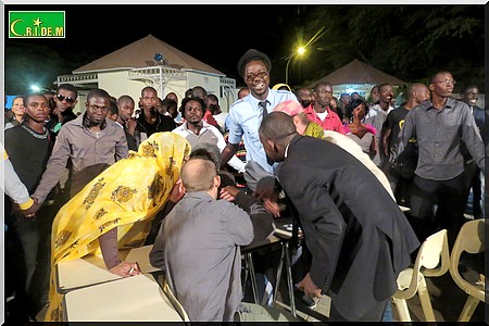 "Ce soir, nous avons eu de très belles prestations et à la fin, nous avons eu deux ex aequo [Toniafiya et Doosey, Ndlr]. Le jury, après d’âpres concertations, a donné la victoire à Toniafiya", annonce Baby Barr, le président du jury d’Assalamalekoum Découvertes 2013.