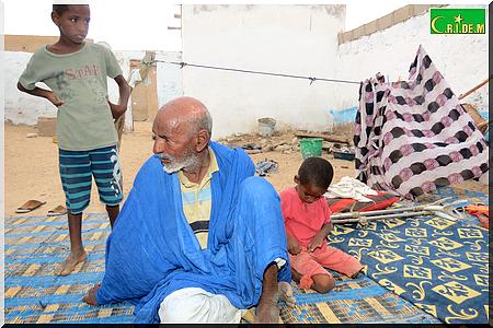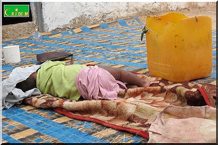 Toute l’après-midi de ce mercredi 7 août, le vieil Ahmed Mahmoud Mohamed Elkory l’a passé sur son unique matelas colonisé par les puces. L’extrême dénuement l’a livré aux mains de la mendicité qui l’a condamné à être l’ombre de lui-même. A quelques mètres de lui, des restes de repas, des excréments de chèvre décorent l’environnement.