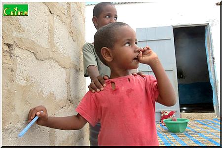 Ici, dans cette famille, on ne vit que des recettes de la mendicité de papa. Il y’a quelques années, en 2008, Ahmed Mahmoud Mohamed Elkory procédait au coffrage pour la construction d’une terrasse, lorsqu’il a cru assister au dernier jour de sa vie. En effet, les planches avaient lâché. Il y’eut des morts et des survivants, dont Ahmed Mahmoud Mohamed Elkory. Il s’en sortira avec l’incapacité de ne plus disposer des planches. Il réussira tout de même à construire deux chambres dont l’une qu’il partage avec toute sa famille.