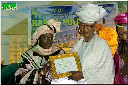 En marge de cette soirée, l’Association des Femmes de Bagodine (AFB) a primé neuf mauritaniennes. Parmi celles-ci, on retrouve la présidente de la Fondation Moktar Ould Daddah, Marième Daddah, la première femme ministre en Mauritanie, Aissata Kane, la présidente de l’Association Mauritanienne des Droits de l’Homme (AMDH), Me Fatimata Mbaye…