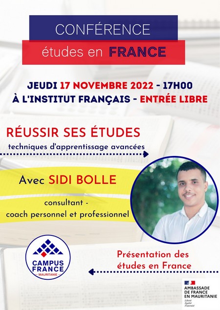 Campus France Mauritanie organise une conférence sur les études en France le jeudi 17 novembre à 17h00 au sein de l'Institut français de Mauritanie (IFM).