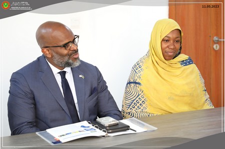 Le Ministre de l’Emploi et de la Formation Professionnelle, Monsieur Niang Mamoudou a reçu, ce jeudi 11 mai 2023, une délégation de la Fondation des États-Unis pour le développement en Afrique (USADF) dirigée par l’Ambassadrice des Etats-Unis en Mauritanie, Madame Cynthia Kierscht et le Président de l’USADF, Monsieur Travis Adkins.