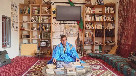 Au cours de notre échange, dans sa maison, il nous déclame des poèmes de Paul Éluard, nous mets en avant sa passion pour l’ethnographe française Odette de Puygaudeau – connue dans la région pour son recensement des us et coutumes mauritanien. Mais ce dont il est particulièrement fier, ce sont les 4 terrains de pétanques qu’il a aménagé avec des projecteurs pour les habitants de son village à quelques kilomètres d’Atar.