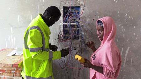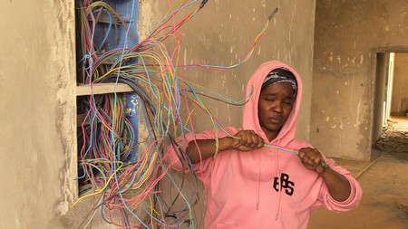 Djelika Kelly, formée à l’électricité en bâtiment dans un centre professionnel de Nouakchott, passe ses journées sur les chantiers. Elle raconte sa passion pour l’électricité, son parcours qui a commencé il y a de cela trois ans. Elle évoque également ses journées sur les chantiers des villas en phase de finition.