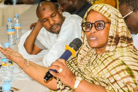 Les panélistes étaient : Halsa Ahmedou (Juriste), Tandia Cheikhna (Juriste) et Moussa Soumaré (Conseiller technique au Commissariat aux Droits de l’Homme), à l’action humanitaire et aux relations avec la société civile.